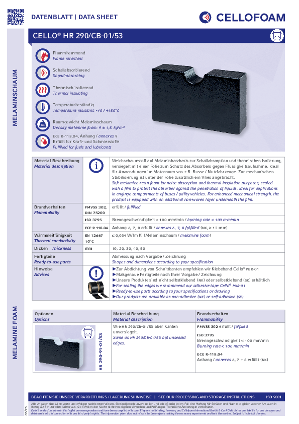 Cello® HR 290/CB-01/53 überzeugt durch seine Dichtigkeit gegenüber Öl, Wasser und Kraftstoff.